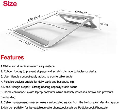 The stand is foldable and easy to carry, making it perfect for on-the-go use. You can bring it with you to work, school, coffee shops, or any place you need to work on your laptop. With its sleek and stylish design, it will complement your workspace and add a touch of elegance to your environment.